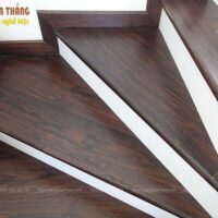 - Mặt bậc cầu thang: Độ dày 3-4cm, chịu lực tốt, bề mặt mịn với vân gỗ tự nhiên. Màu nâu đen tạo cảm giác ấm áp, phù hợp cho nhà phố hoặc biệt thự.