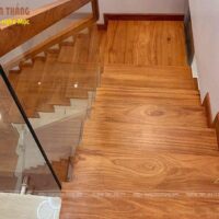 - Đặc điểm: Mặt bậc sử dụng gỗ Gõ Đỏ, kết hợp với đá granite hoặc marble cho phần chiếu nghỉ.