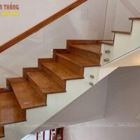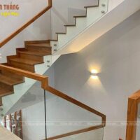 - Đặc điểm: Thiết kế tối giản, kết hợp với kính cường lực hoặc inox cho lan can, mặt bậc gỗ phẳng mịn.
