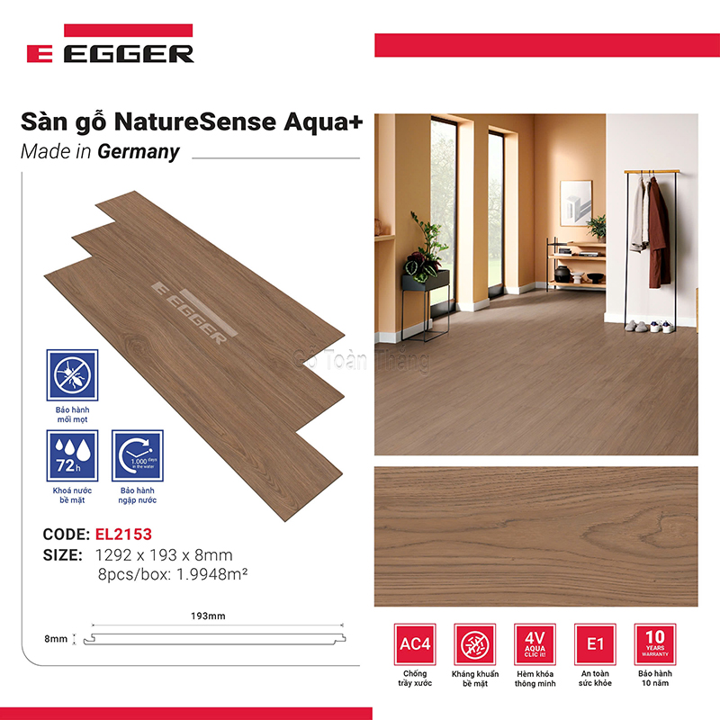 Sàn Gỗ Egger Aqua cốt đen 8mm EL-2153