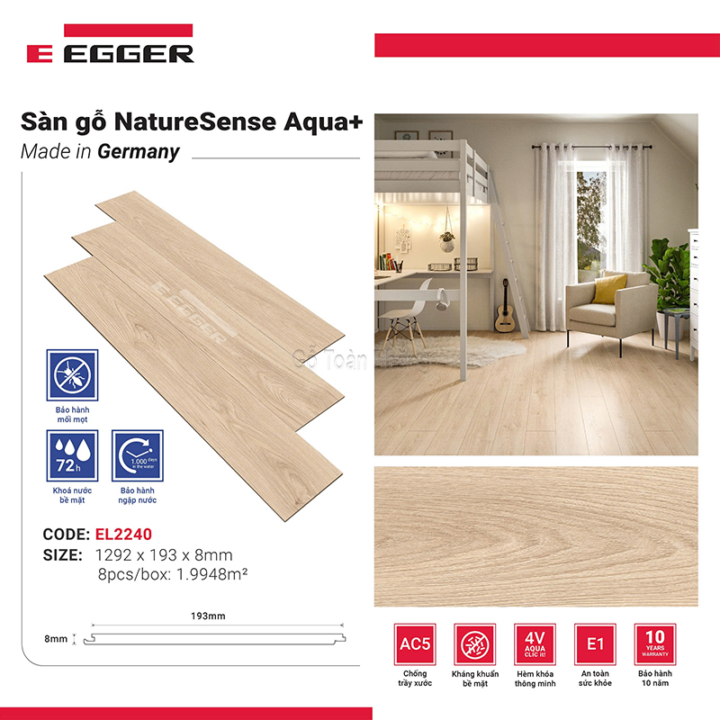 Sàn Gỗ Egger Aqua cốt đen 8mm EL-2240